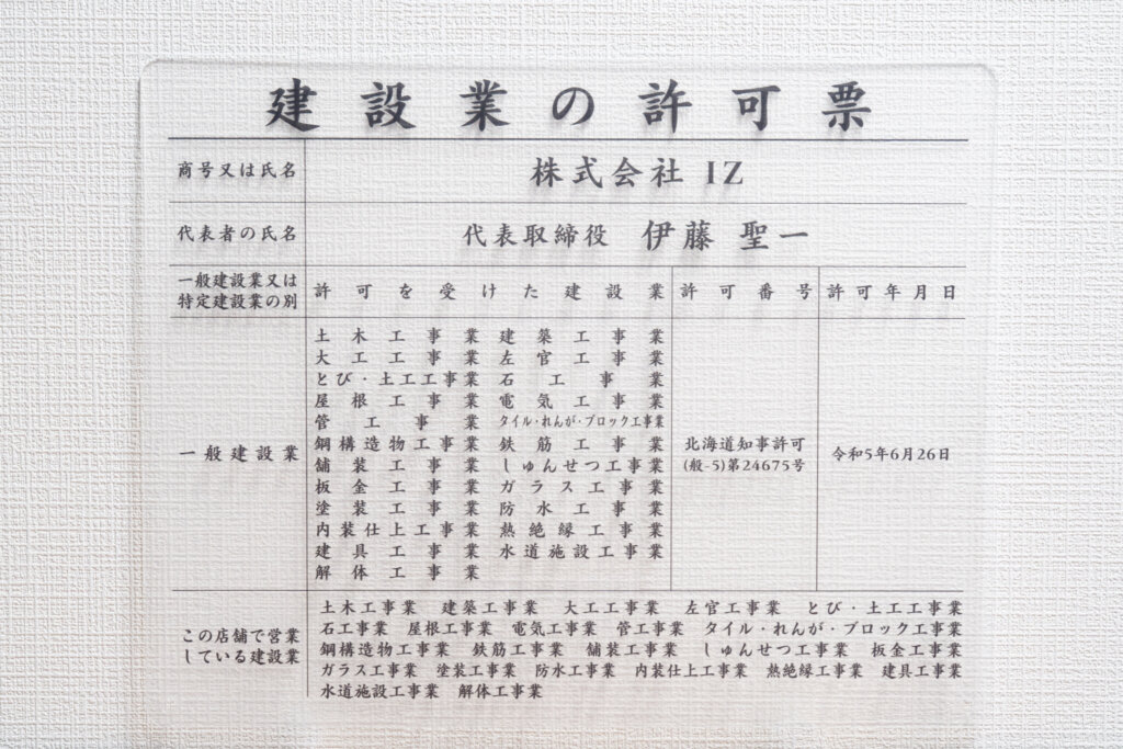 株式会社IZでは、法令に基づき必要な許認可・届出を行い、適正な体制で業務に取り組んでおります。
