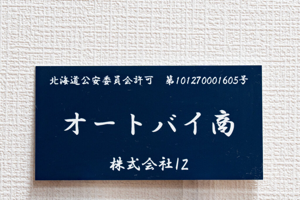| 古物 | 古物商許可(オートバイ商) | 北海道公安委員会 | 第101270001605号 | ― |